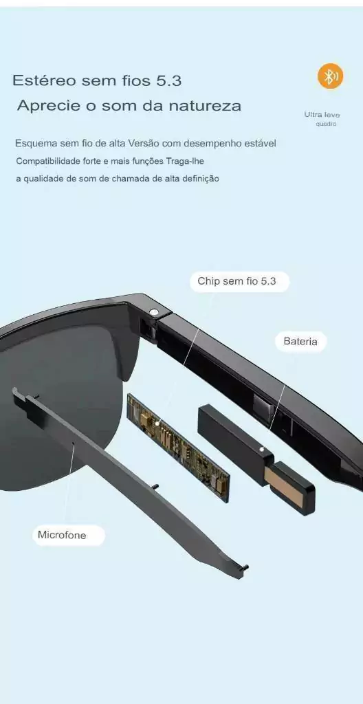 Equipados com condução aérea e som externo, os fones de ouvido embutidos oferecem áudio de alta fidelidade (HiFi), permitindo que você desfrute de suas músicas favoritas sem a necessidade de fones convencionais. Além disso, a conexão Bluetooth 5.3 garante emparelhamento rápido e estável com smartphones, tablets e outros dispositivos compatíveis.